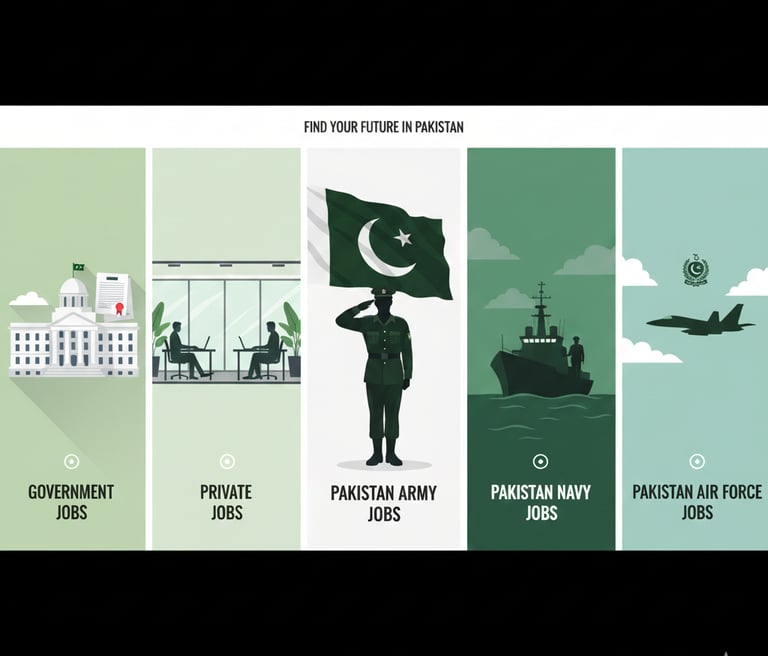 "Latest Government, Private, Army, Navy & PAF Jobs in Pakistan. Apply online for top careers with updated listings daily."